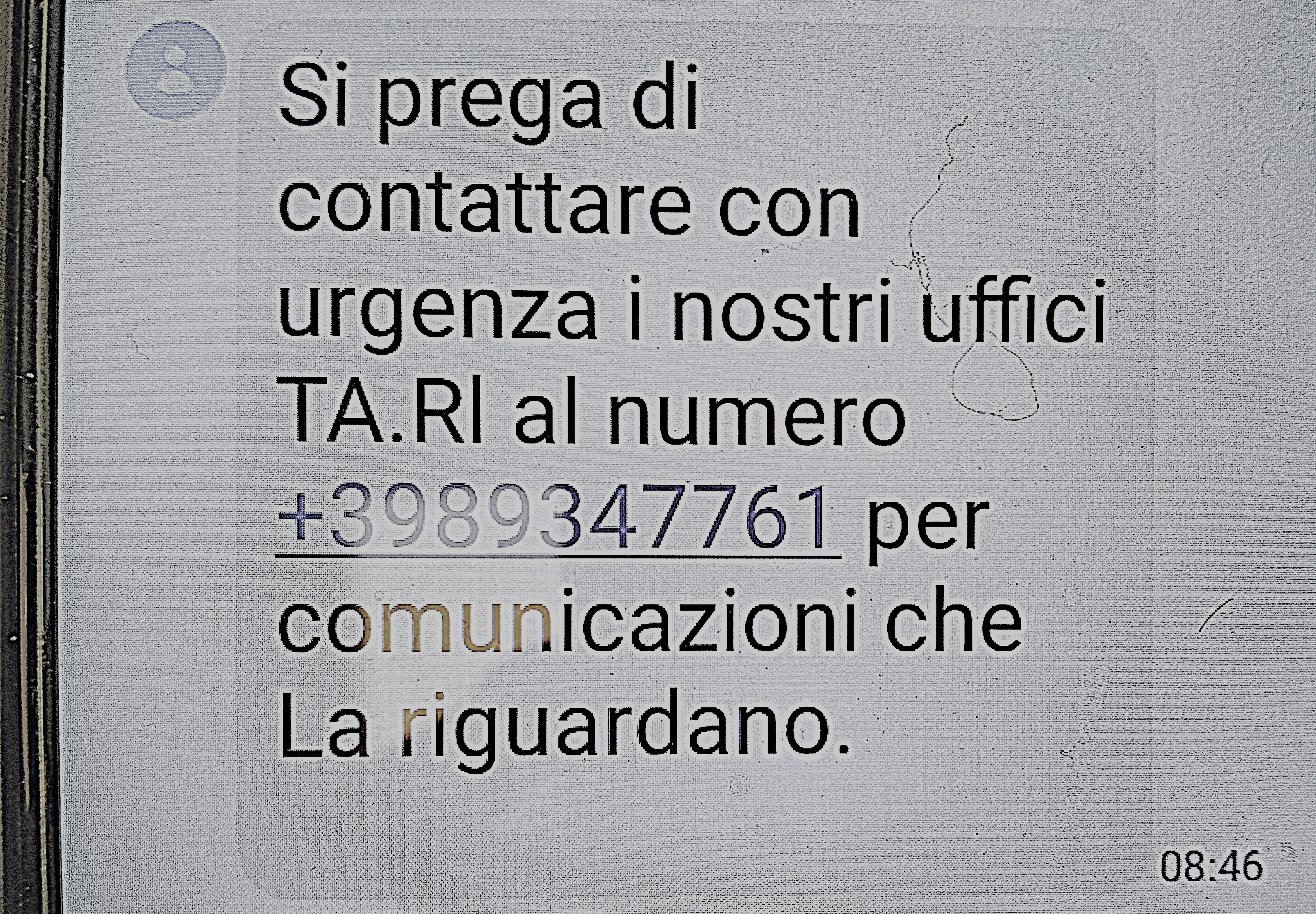 L’Amministrazione comunale di Albagiara segnala la presenza di SMS fraudolenti che riguardano la presunta regolarizzazione della posizione TARI. Si tratta di messaggi che invitano a contattare con urgenza dei numeri telefonici.